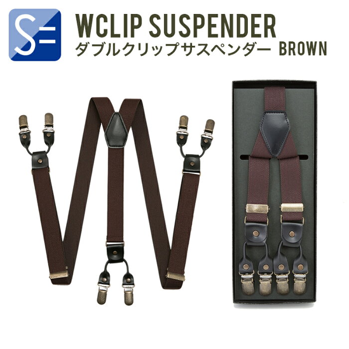 サスペンダー 25mm Y型 ダブルクリップ( 無地 ブラウン 茶 )メンズ&レディース 【送料無料】