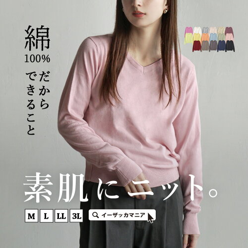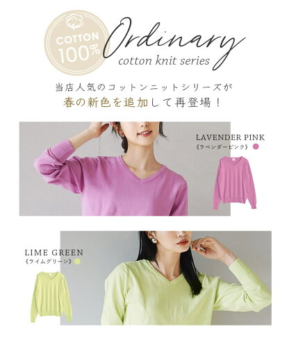 【72h限定☆クーポンで20%OFF】ニット M/L/LL/3L 毎日着たい 綿100% ニット 。 レディース トップス セーター ライトニット 長袖 Vネック コットン 大きいサイズ ゆったり 秋 【メール便可22】◆zootie(ズーティー):オーディナリー コットンニット セーター[Vネック]