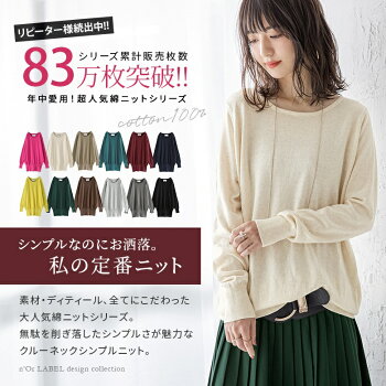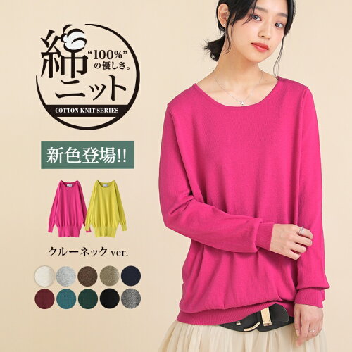 【全品送料無料】9/12(月)12:59迄【新色登場】M〜5Lサイズ展開!『n'OrLABELクルーネックシンプルデザインニット』[ニット レディース トップス セーター コットン 長袖 綿ニットシリーズ クルーネック 綿100% コットン シンプル カラバリ]【メール便不可】