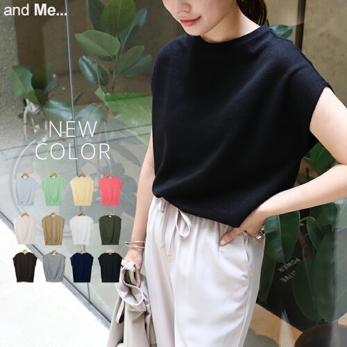 【メール便対応B】【送料無料】Tシャツ レディース 半袖 ノースリーブ ニット 黒 フレンチスリーブ ニットカットソー トップス カットソー 無地 Uネック クルーネック M/Lサイズ