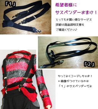 エッジィにはきこなせる1着! 【サスペンダーおまけについて】 サスペンダーはご希望のお客様のみの限定おまけとなります。