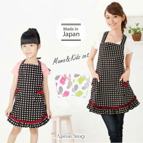 【親子ペアで宅急便送料無料】【ラッピング無料】【日本製】J1115&JK1040の親子セット エプロン 親子クッキング キッズ 子ども お揃い 北欧/かわいい ワンピース プレゼント ギフト【刺繍対象】