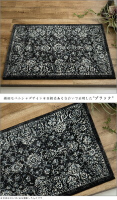カラー: ブラック " 50万ノットの高密度ウィルトン織り " 50万ノットで表現することで、柄の緻密さや かすれた雰囲気をうまく表現したラグマットです。