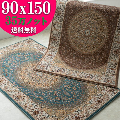【10H限定!5%OFFクーポン対象】 玄関マット 90×150 高密度 35万 ノット 高級 ペルシャ絨毯 柄 高密度35万ノット ウィルトン織 室内 北欧 ラグマット 屋内 ブルー ブラウン 青 茶 トルコ 製 送料無料 ヨーロピアン じゅうたん カーペット 絨毯