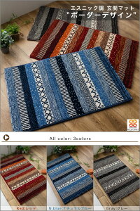 【10H限定!5%OFFクーポン対象】 玄関マット 室内 エスニック ボーダー 柄 50×80 おしゃれ 北欧 風 屋内 ベルギー絨毯 ウィルトン織 ブルー レッド グレー 塩系 西海岸 ラグマット ギャベ キリム ドアマット アクセントマット 送料無料